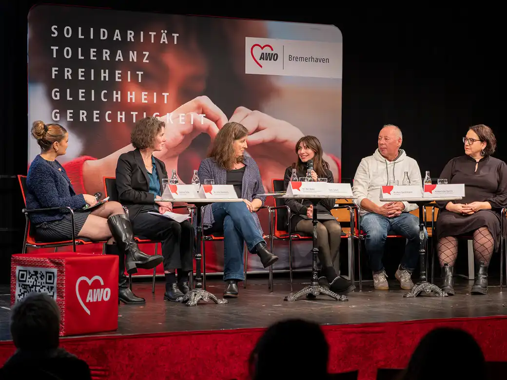 Nach der Begrüßung durch AWO-Prokuristin Silke Rupietta machte Moderatorin Francine Fester (Bremen Next) gleich zu Beginn die Diskrepanz deutlich, der wir alle täglich ausgesetzt sind: „So ein Smartphone ist schon ein tolles Gerät. Aber wir müssen uns der Risiken und Gefahren bewusst sein – besonders im Interesse von Kindern und Jugendlichen.“