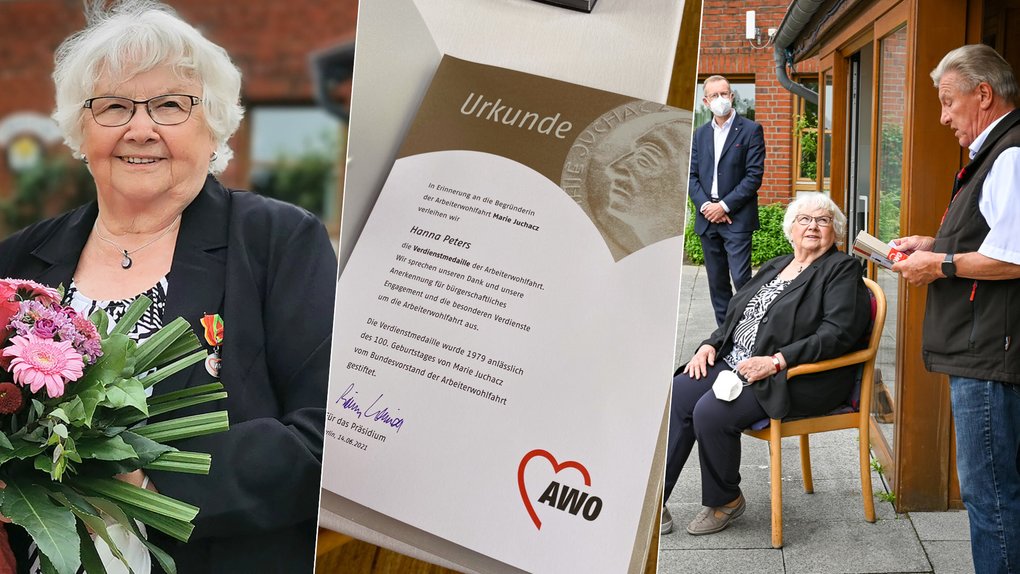 „Hanna Peters hat mit ihrem selbstlosen und aufopferungsvollen Einsatz Maßstäbe gesetzt“, sagt Dr. Uwe Lissau, Vorsitzender des AWO Kreisverbandes Bremerhaven e.V., „sie verkörpert ehrenamtliches Engagement auf ihre ganz eigene unnachahmliche Weise.“ Der AWO Kreisverband spreche dafür seinen allerherzlichsten Dank und die höchste Anerkennung aus.